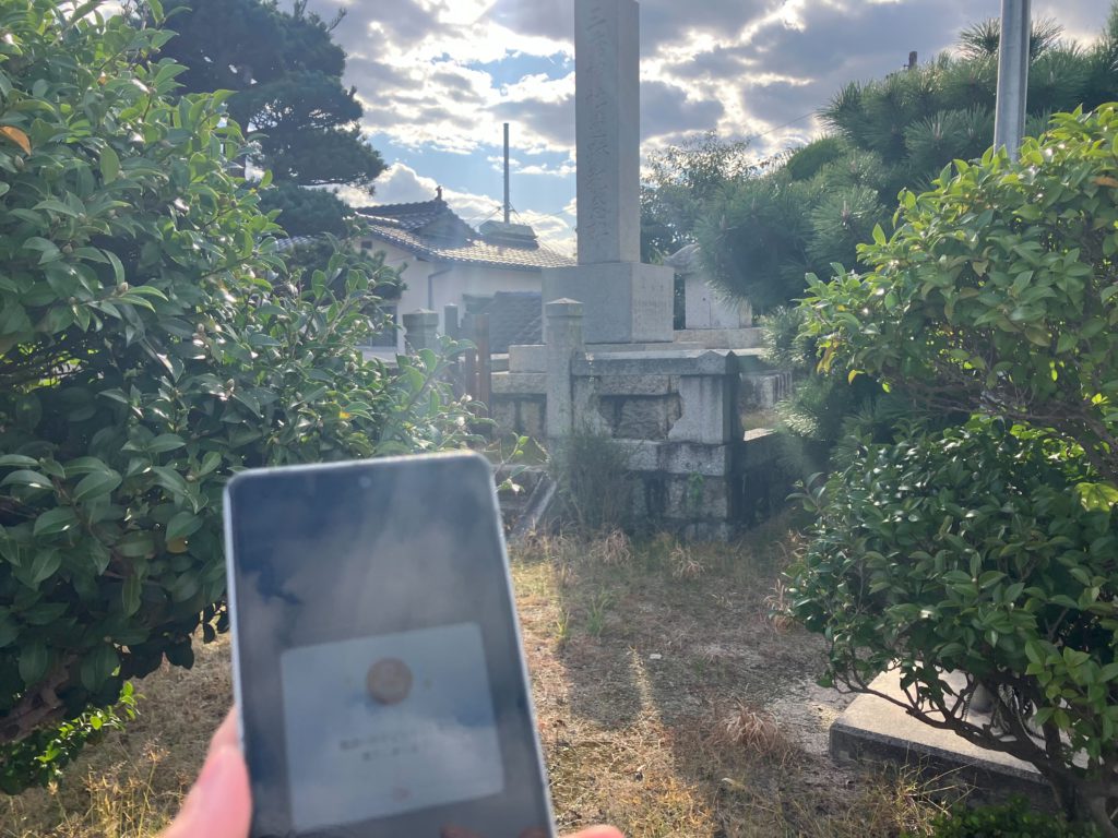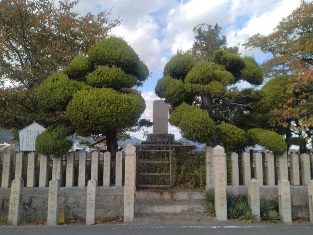あいさつ通りを少しそれて、宝暦殉難三士の墓でチェックイン、続けて三秀神社遺跡記念碑へ。