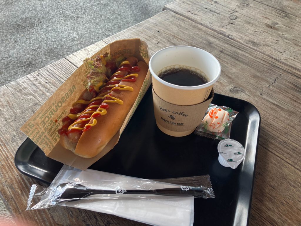 たくさん歩いてお腹がすいたので、ホットドッグ!